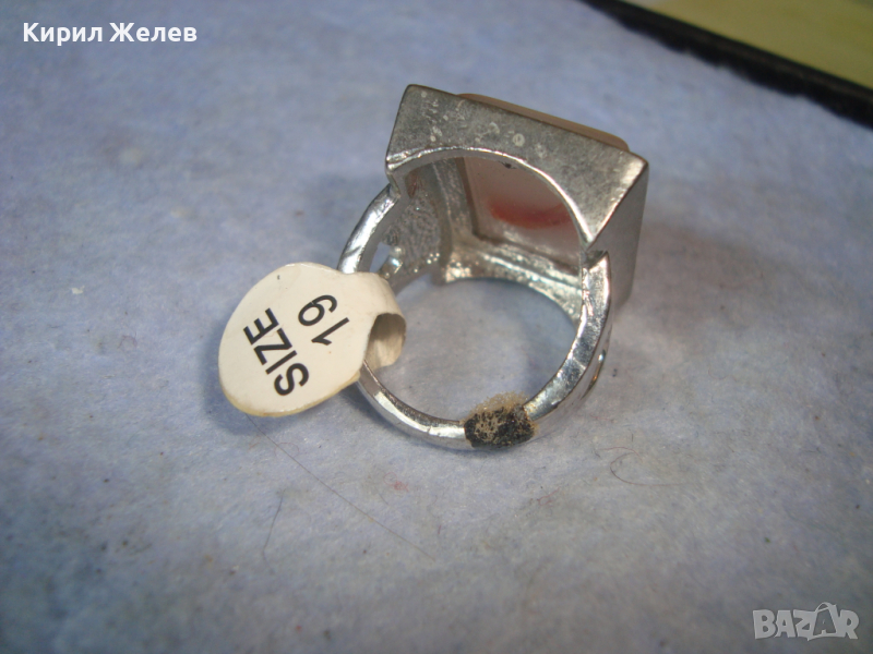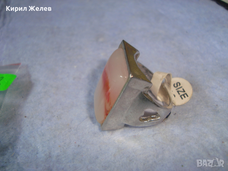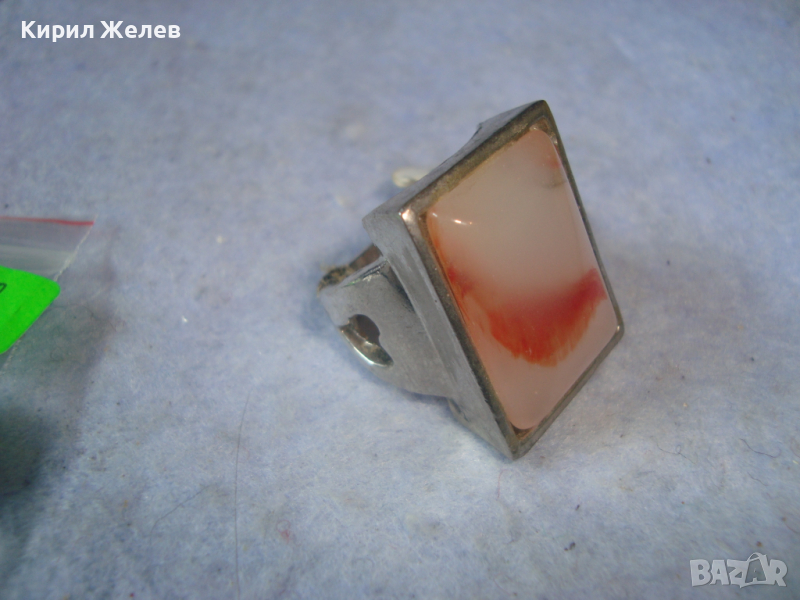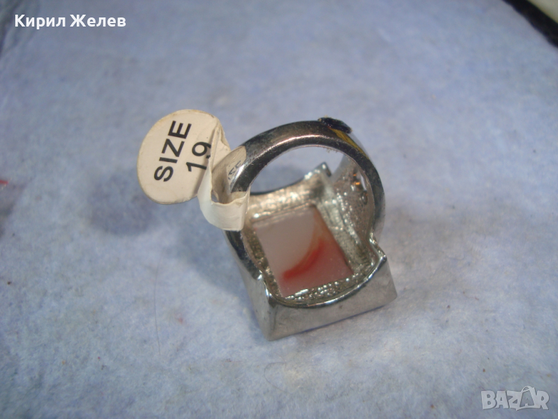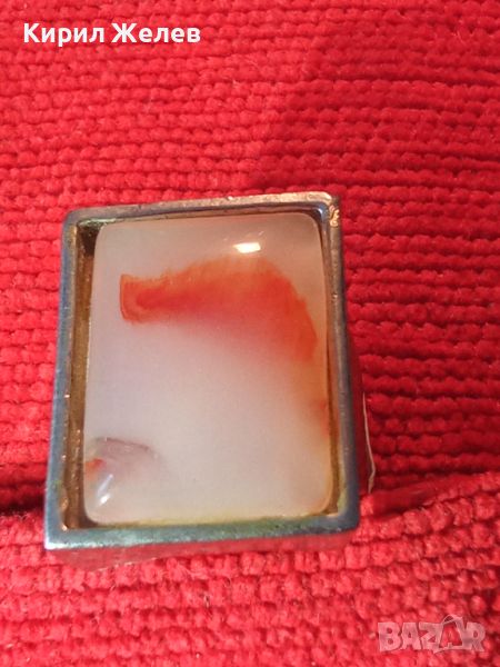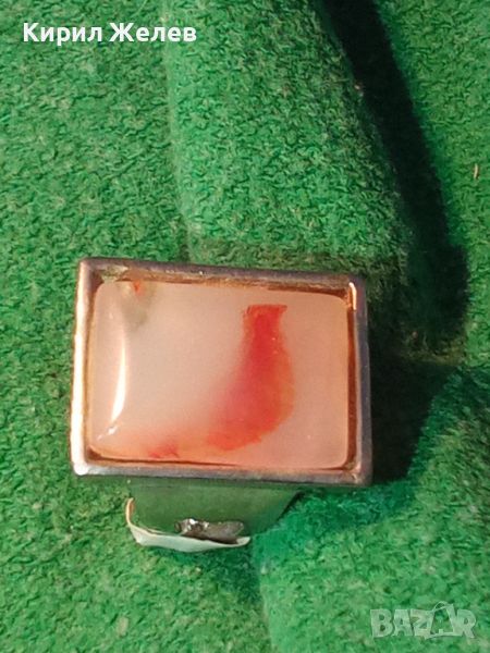 НОВ ПОСРЕБРЕН КРАСИВ СТИЛЕН АРТ ПРЪСТЕН с ГОЛЯМ ШЛИФОВАН КАМЪК - АХАТ 26627