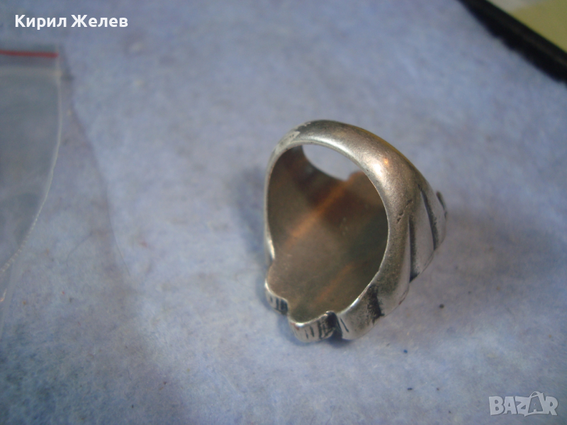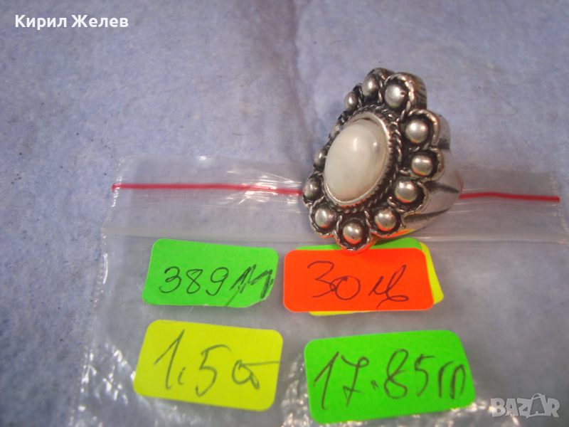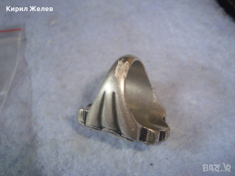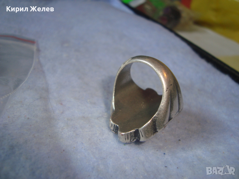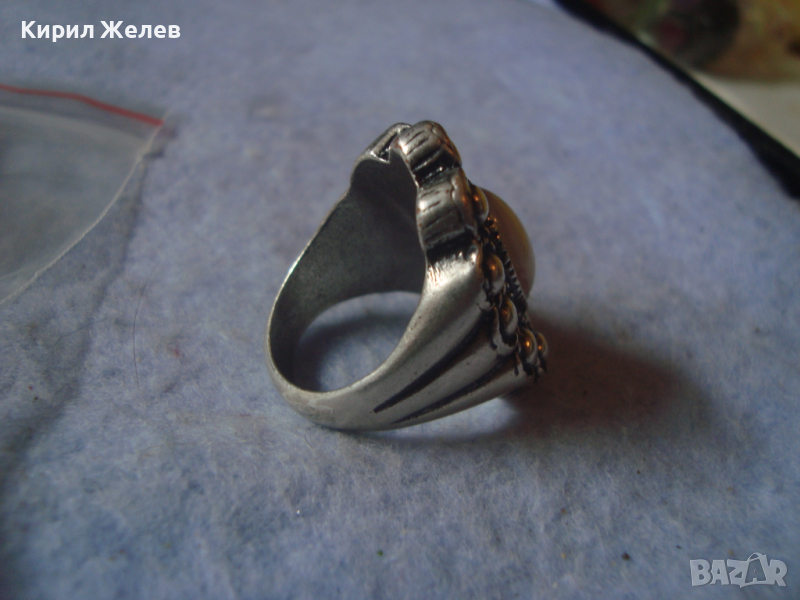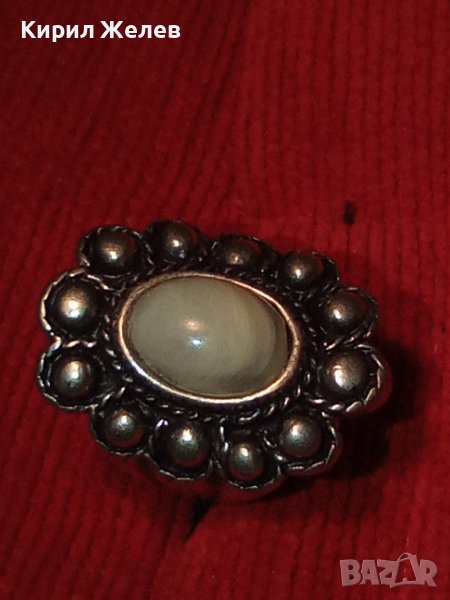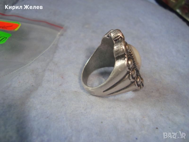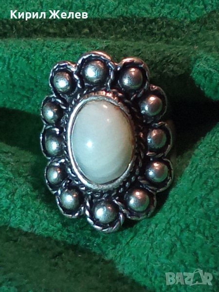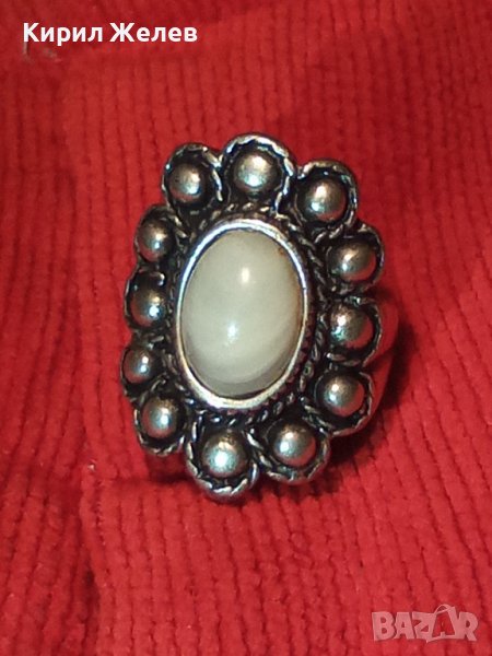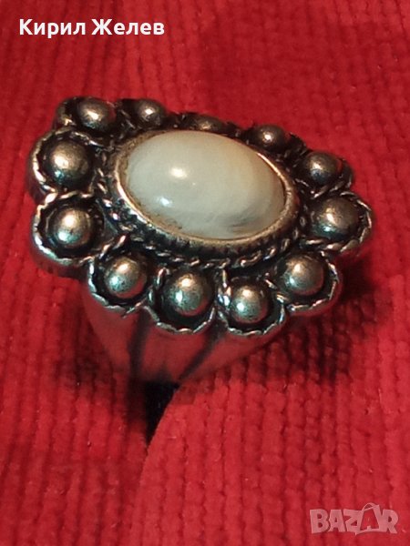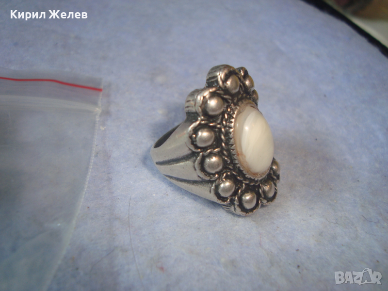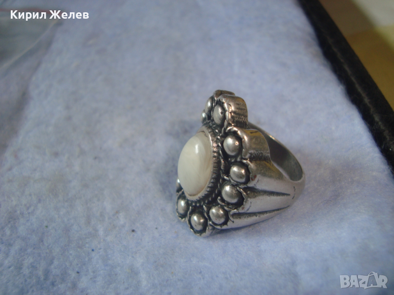 ДЪЛБОКО ПОСРЕБРЕН АРТ ДЕКО СКЪПОЦЕНЕН МЕДЕН ПРЪСТЕН с ПОЛИРАН БЯЛ АХАТ 38911