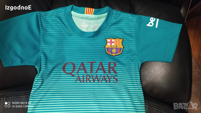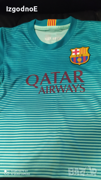 Страхотна тениска на Барса. Без етикет е, явно съм го свалила, но е нова, не е носена. Беше ни подарък, но беше голяма и аз я прибрах, а след това направо забравих за нея и така остана. Снимала съм всички надписи, мисля, че е оригинална, но дори и да греша, определено е качествена, не е от тези китайски тениски и комплекти, които се продават. Слагам за момче, но цветът е супер свеж, става и за момиче. На нас ни беше подарък за момиче.
