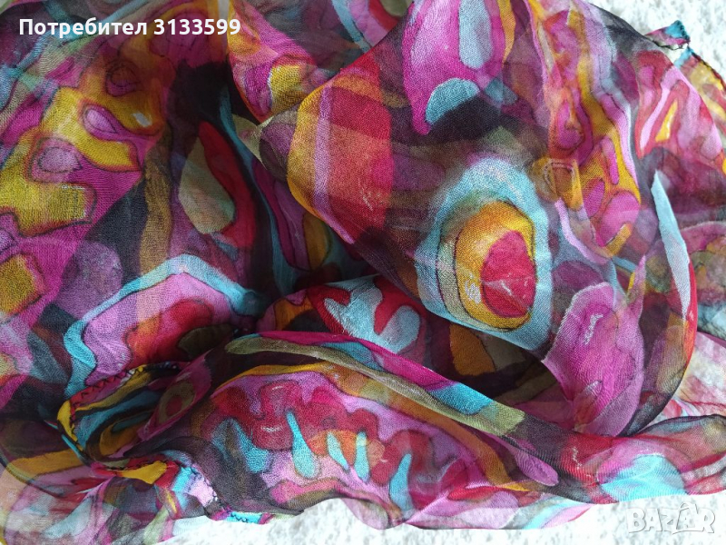 - шал в червено, светло синьо, розово, жълто. Размери: 95/95 см. ЦЕНА: 5 лв.