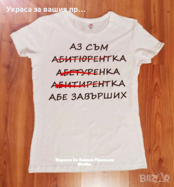 * тениска за Абитуриентка * лента с текст по поръчка → Обява 36413654