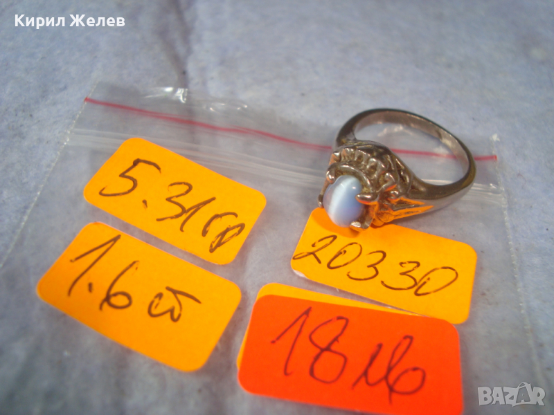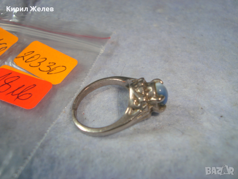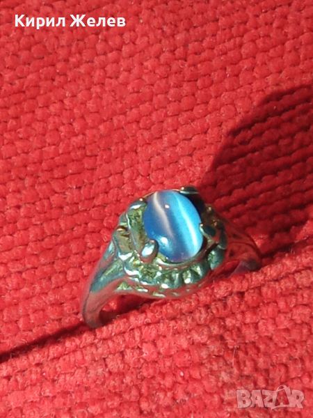 АРТ ДЕКО ПОСРЕБРЕН КРАСИВ ПРЪСТЕН с КАМЪК СИНЬО КОТЕШКО ОКО 20330