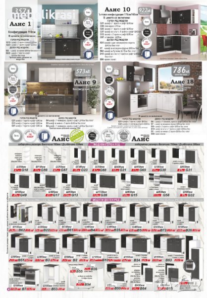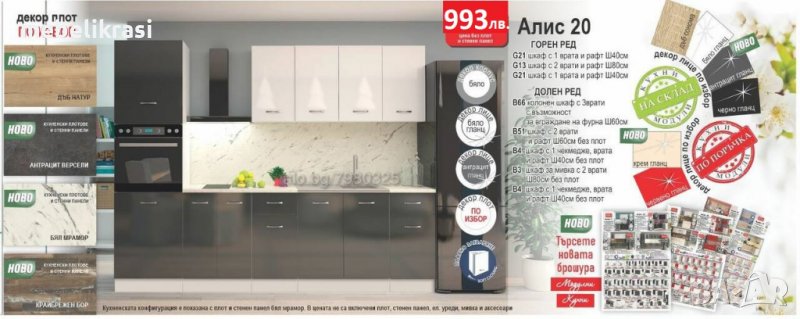 Кухня Алис 20 е с дължина 280см. Предлага се в декор -бяло гланц и антрацит гланц,за лице на шкафовете и декор бяло мат за корпуса. В бюло гланц е на склад,а в антрацит гланц по поръчка!!!