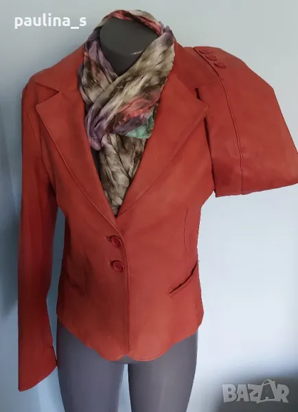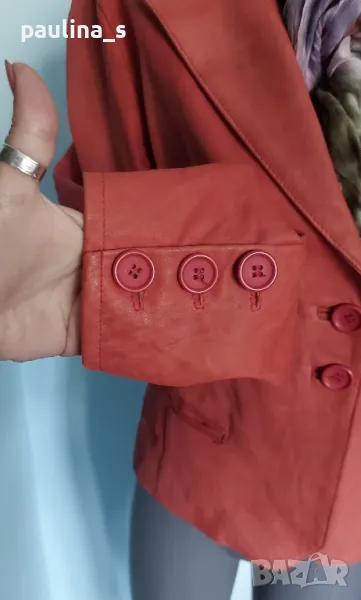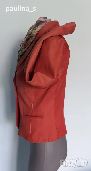 1️⃣. Много красиво и елегантно сако от естествена кожа - набук / напа. Кожата е мека, като жива на допир, но е по-лъскава от набука и същевременно по-матирана от кожите с друг начин на обработки за кожа. Изумителна дреха, като нова, поставяна е само веднъж за повод и на манекен.