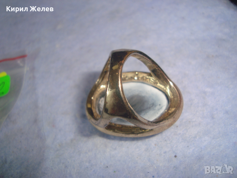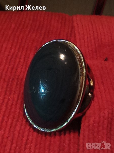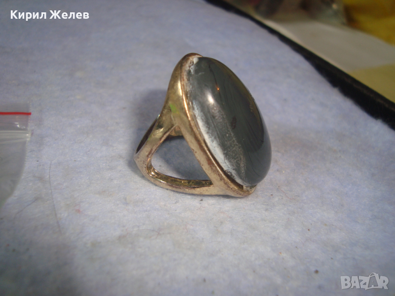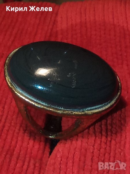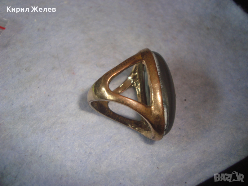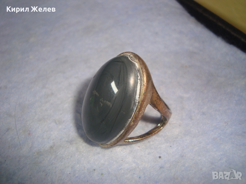СТАР МЕДЕН ПРЪСТЕН с ПОЛИРАН ЮВЕЛИРНО ГОЛЯМ ЧЕРЕН АХАТ 91241