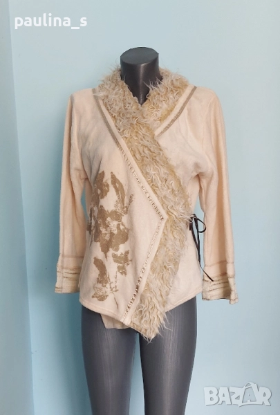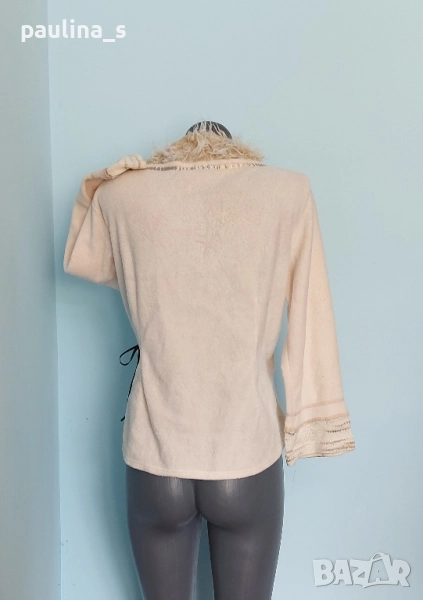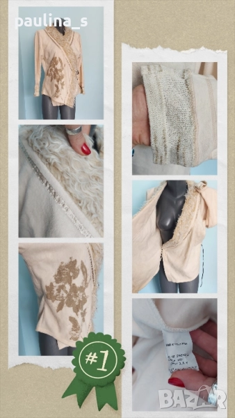 3️⃣. Колаж / XL / 3XL - "Lipo Lipo". Цената е крайна, без пазарлъци 29,99лв / 15 евро. Шикозен топ тип жилетка с декорирана предна част и прихлупване. Декорациите са от еко косъм и апликации. Материята е топъл полар, с допълнения на ръкавите. Дължина на ръкавите 7/8. Като нова, без дефекти и етикет.