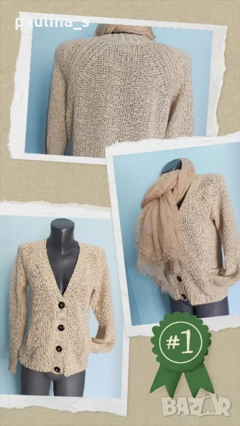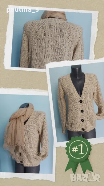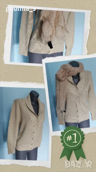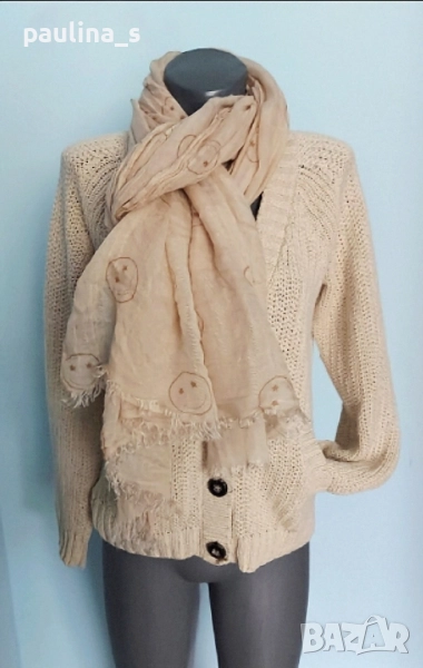 1️⃣. XL / 3XL - "Esprit" - 24,99лв / 12,5 евро. Като нова! Много мекичка хипоалергична жилетка с джобове и тъмни копчета, в неутрален цвят - нюд, подхожда на всичко. Плетивото дава еластичност и покрива няколко размера, посочени са. Преждата е 50% памук и 50% акрил, хипоалергична. Дрехата е без дефекти и етикет, нова, една бройка. Шалът с усмивка ематикон се продава друга моя обява - 19,99лв / 10 евро.