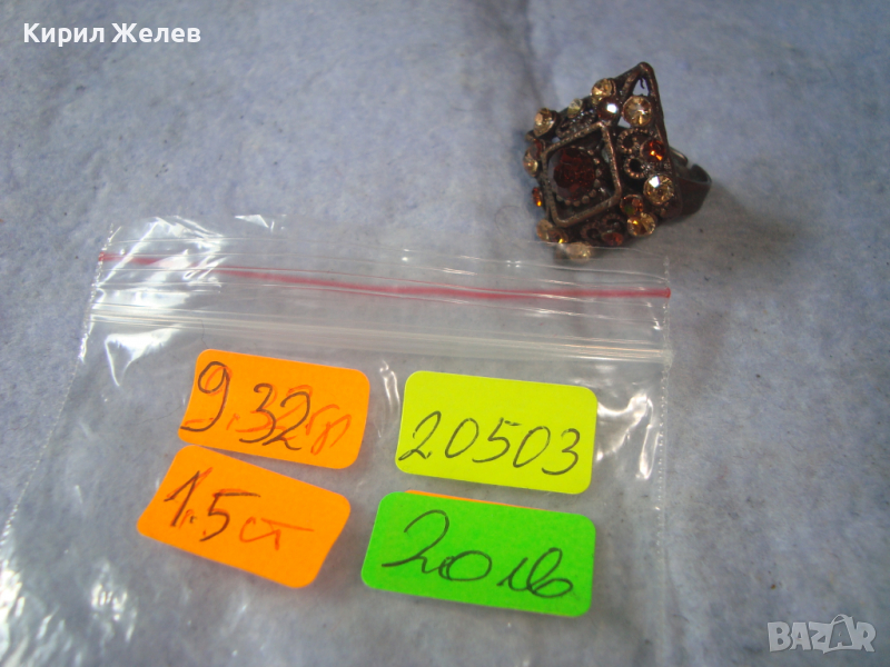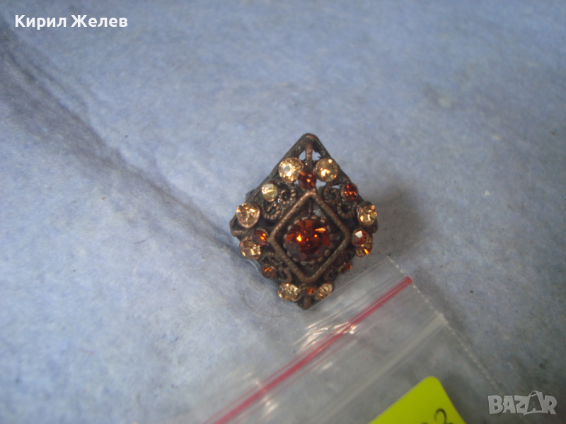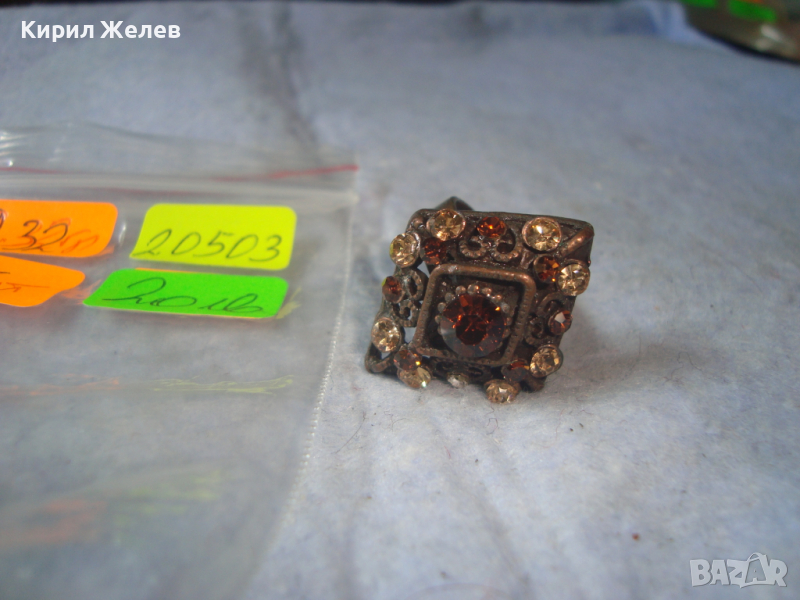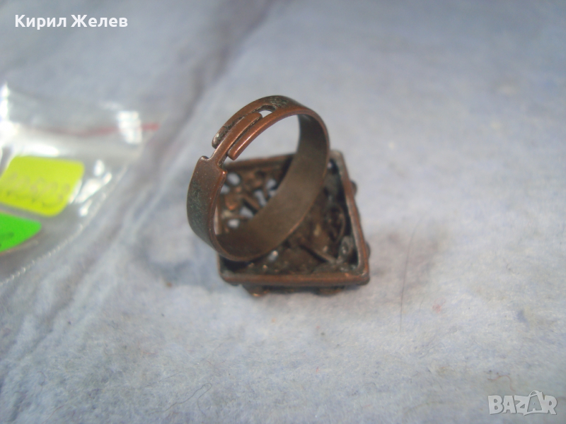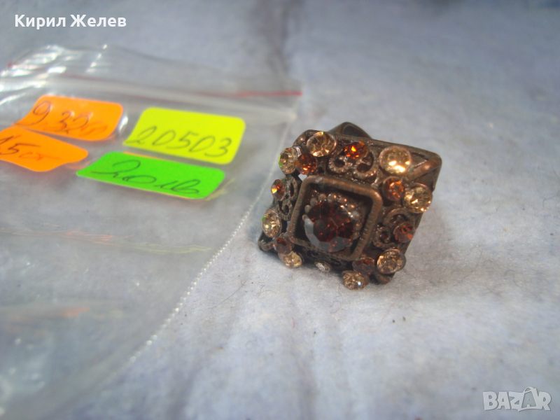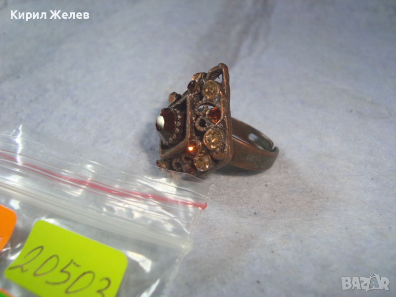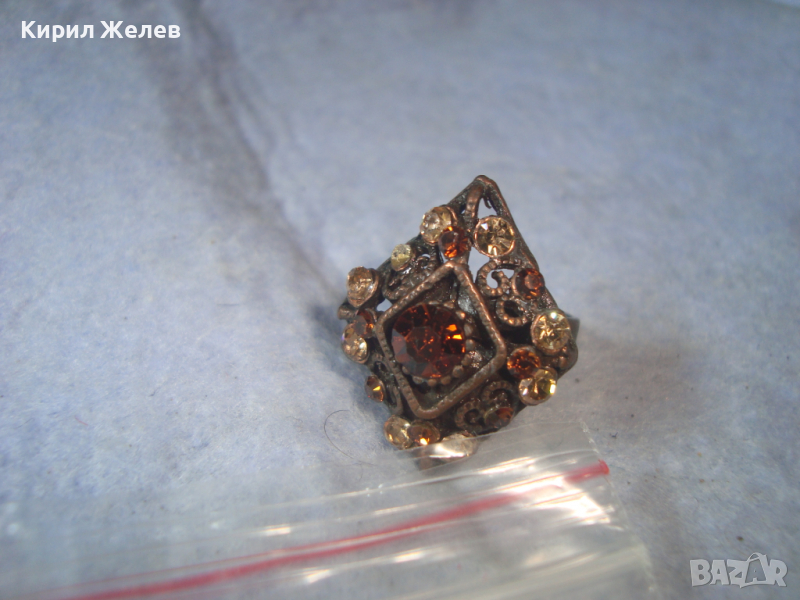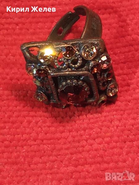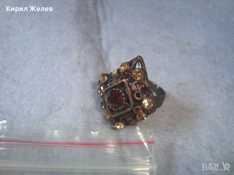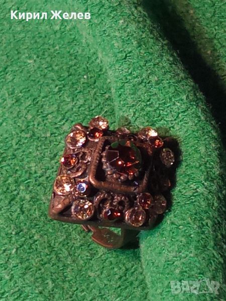 МЕСИНГОВ РЕТРО - ВИНТИДЖ СКЪПОЦЕНЕН АРТ ДЕКО ПРЪСТЕН с ЦИРКОН и ЦИТРИН РЕГУЛИРУЕМ 20503
