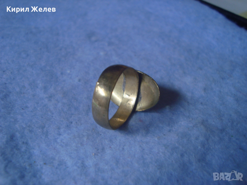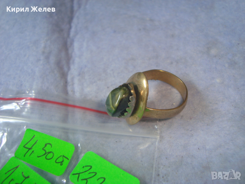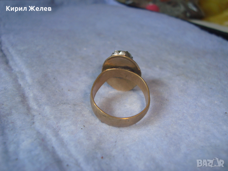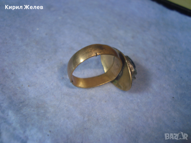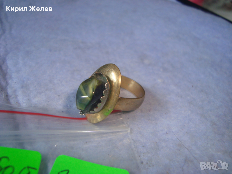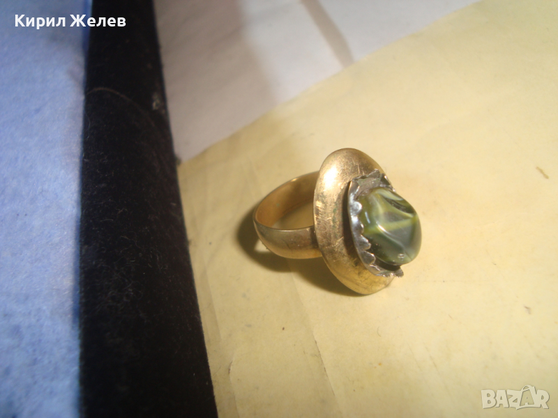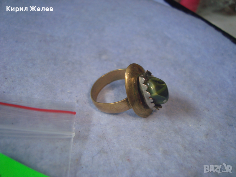 СТАРИНЕН МЕДЕН с ДЪЛБОКА ПОЗЛАТА СКЪПОЦЕНЕН ПРЪСТЕН с ПОЛИРАН НАТУРАЛЕН ЯСПИС РЪЧНА ИЗРАБОТКА 22219