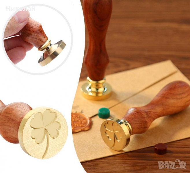 Печатът и лъжицата са изработени от дърво и метал . Можете