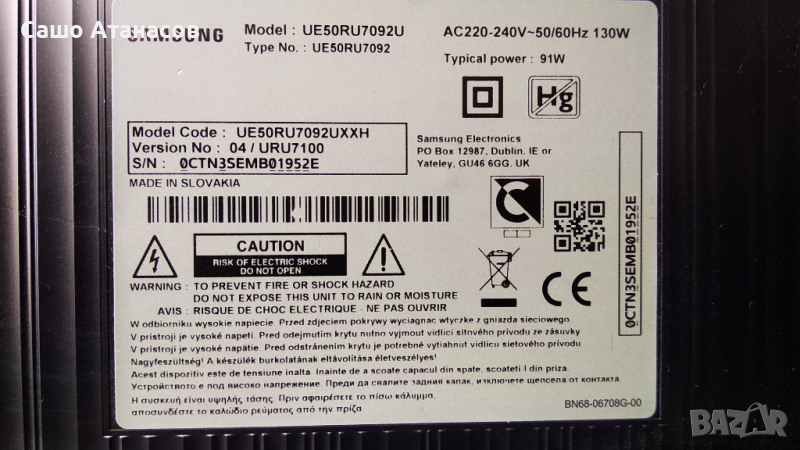SAMSUNG UE50RU7092U със счупена матрица ,BN44-00932Q ,BN41-02703A ,CY-NN050HGAV1V ,Y19 VNB SILVER
