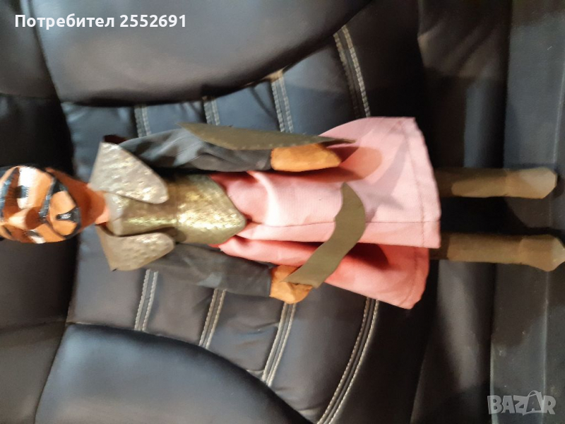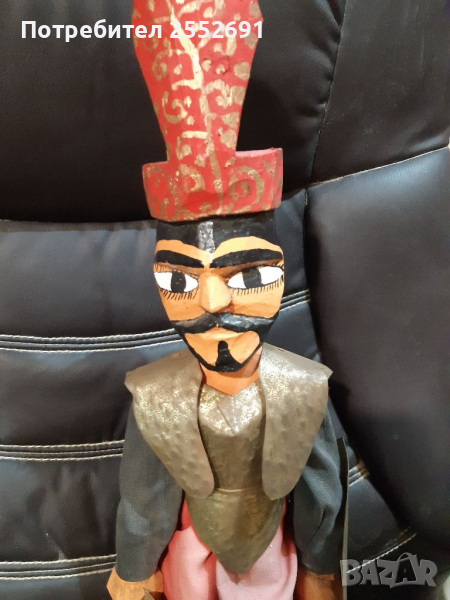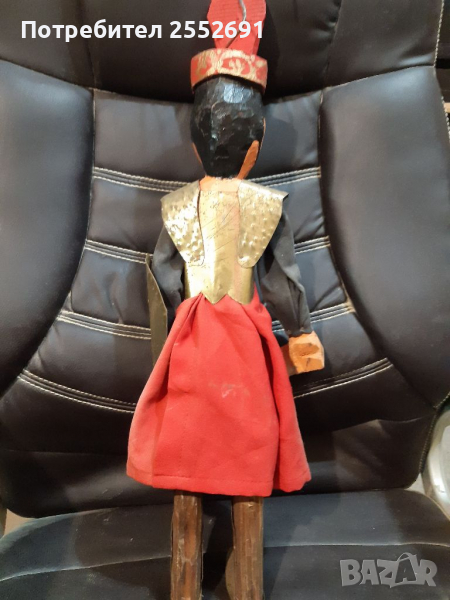 Старинна, ръчно изработена от дърво, метал и плат, изрисувана КУКЛА- МАРИОНЕТКА. Височина-60см.