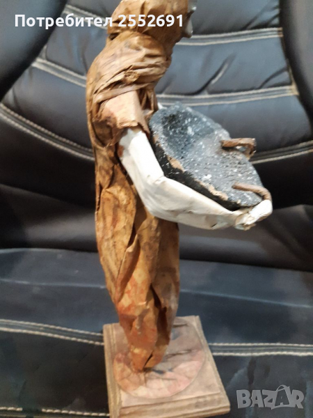 Ръчно изработена от хартия, тел и глина, уникална женска фигура. Основата е дървена. MADE IN MEXICO. Височина-31см.