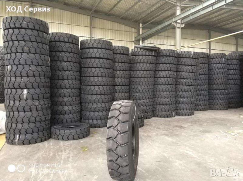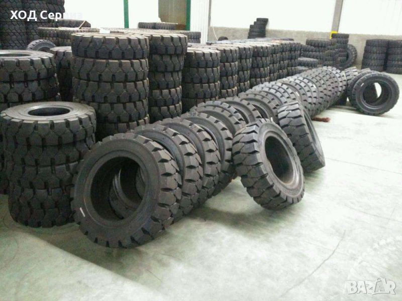 Разполагаме с гуми на склад, както и с преса за демонтаж, монтаж и набиване на супереластични и бандажни гуми за мотокари с размер от 4 до 25 цола.