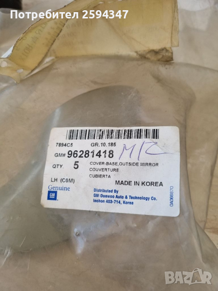КАПАЧКИ СТРАНИЧНИ ОГЛЕДАЛА DAEWOO CHEVROLET MATIZ SPARK 1998-2005г 96316108 RH 96316107 LH ЦЕНА ЗА БРОЙ