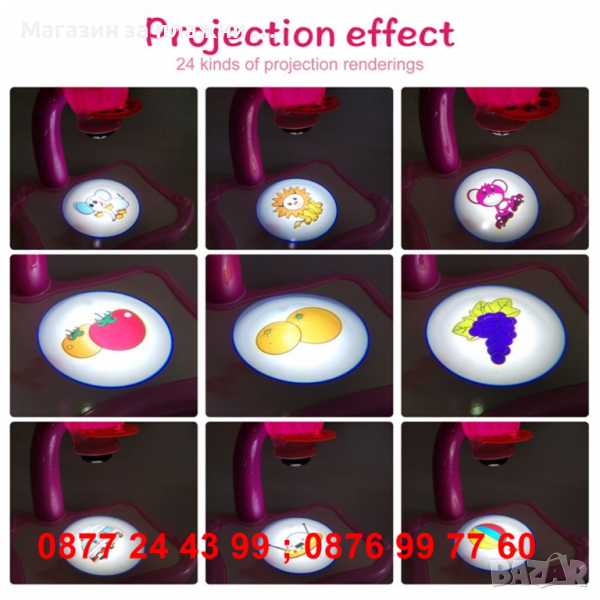 Детски проектор за рисуване, розов, син и жълт - КОД 3290