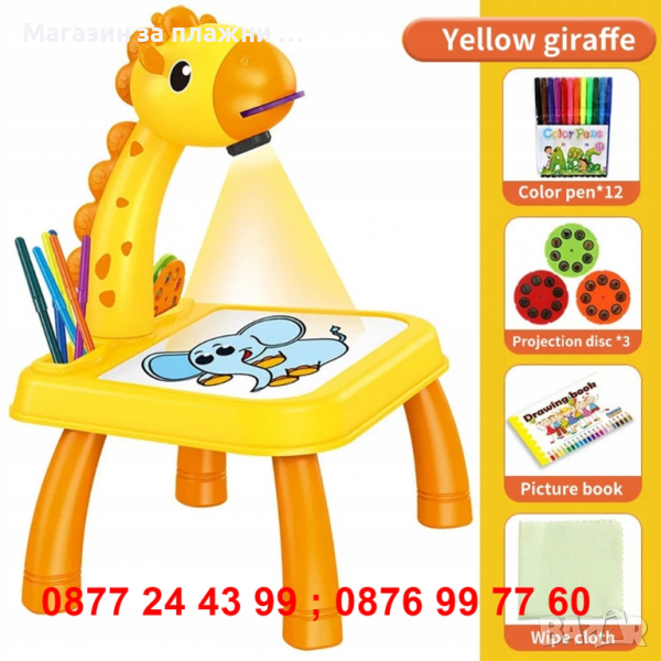 С този проектор вашето дете ще се научи лесно да рисува. Поставете дисковете с изображения и желаната картинка ще се визуализира на хартията. С маркерите вашето дете ще може да повтори контурите на изображението или да го нарисува по свой вкус. С този протектор ще стимулирате развитието на рисувалните и умения и въображението.