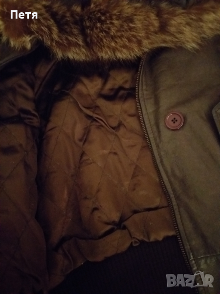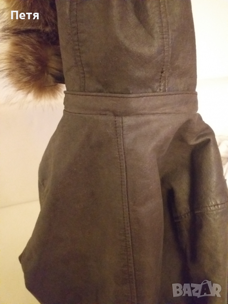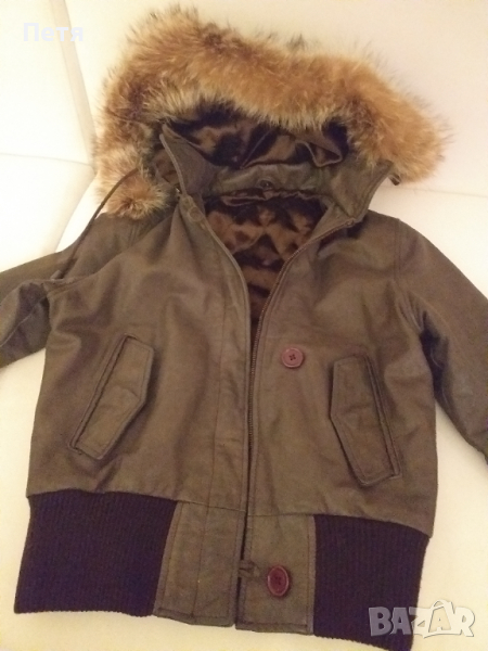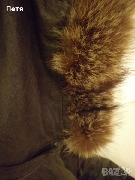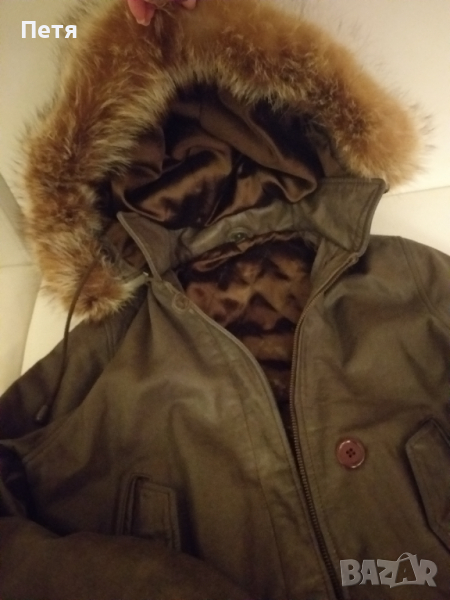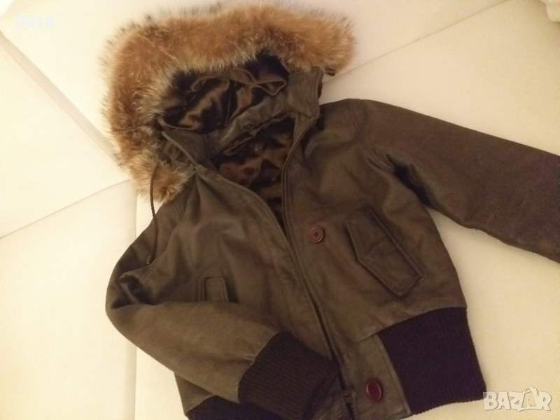 Чудесно яке за сезона от естествена кожа и косъм от лисица сваляща се качулка с размер ,само пробвано, от здрава кожа, цвят кафяв става наs,xs размер