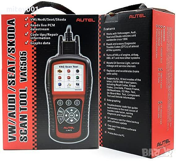 MaxiService Autolink устройство за диагностика на неизправности AUTEL VG505 e роектиран за повечето VW / Audi / Seat / Skoda. Този диагностичен инструмент се отличава с използването на собствен диагностичен протокол на Volkswagen VG505, който позволява на потребителя достъп до почти всички системи. Малък, здрав, достъпен и лесен за използване, този разбиращ в технологиите уред е най-добрият инструмент, който трябва да държите наблизо. Предлагат се 5 гигабайта диагностичен софтуер.