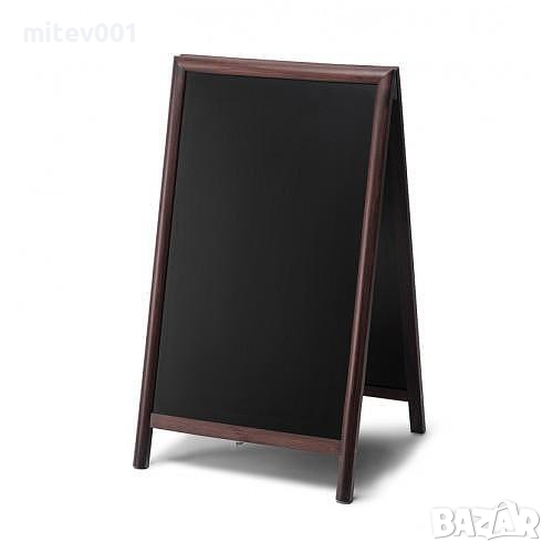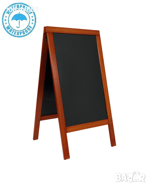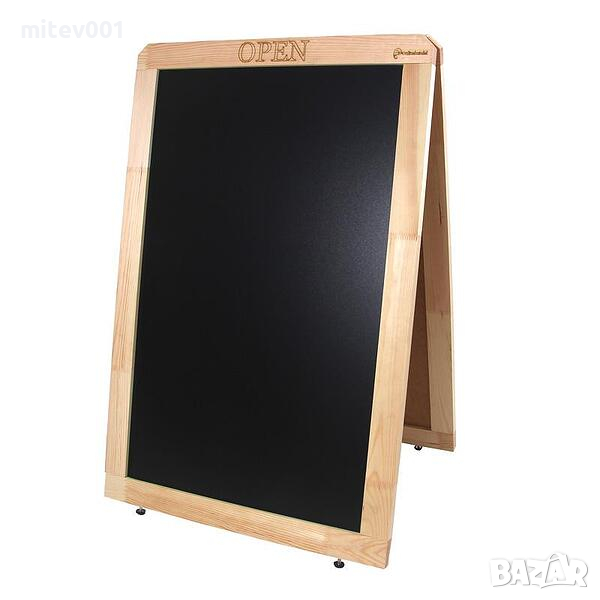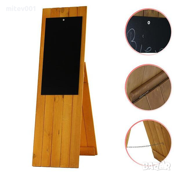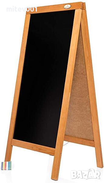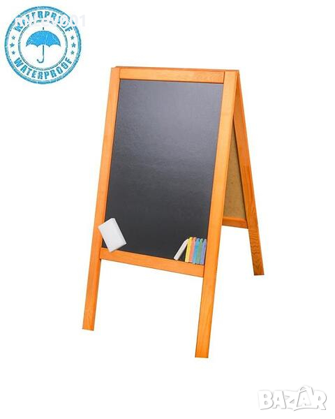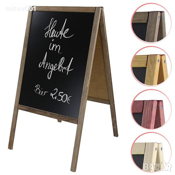 Дървени дисплеи за клиенти, изработена от дърво, която може да се изписва от двете страни. Благодарение на специалната повърхност на дъската, дъската се почиства лесно. Подходящо за вътрешна и външна употреба.