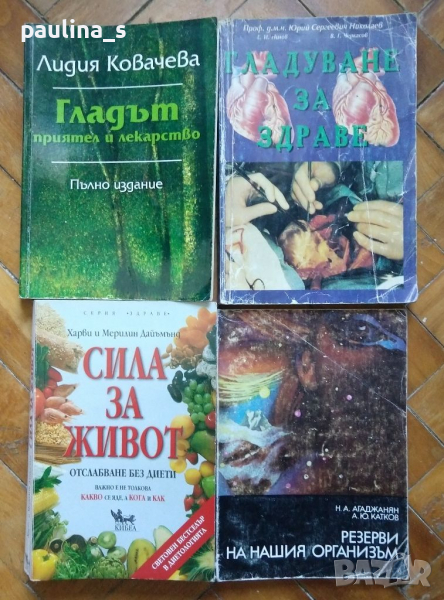 Книги по диетология, лечебен глад, хранене. Книги за ментално подпомагане на оздравителните процеси. Всички са четени, без липсващи страници. Цената е различна за всяка една.