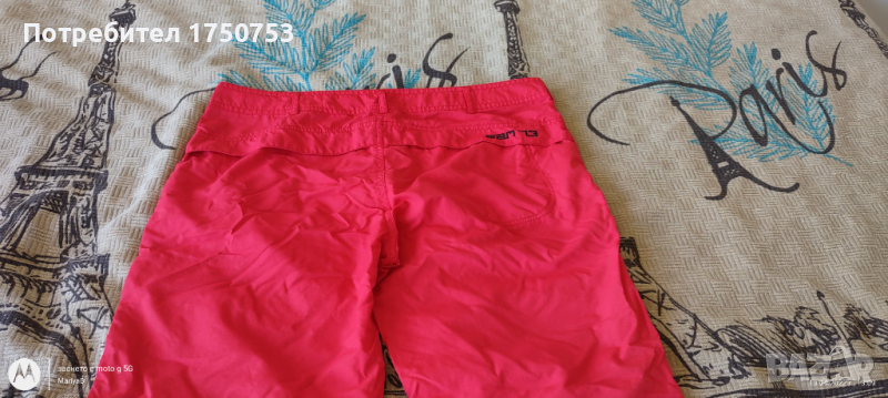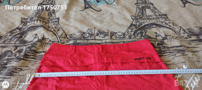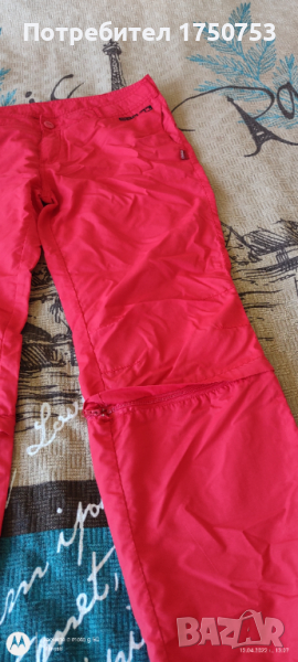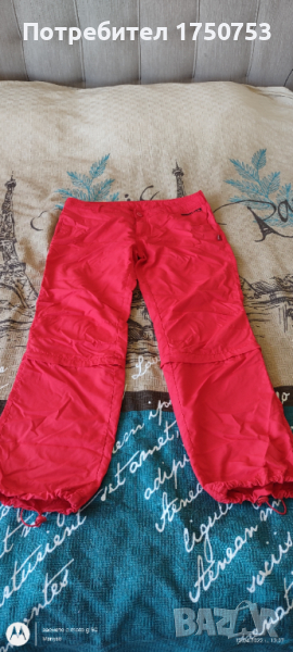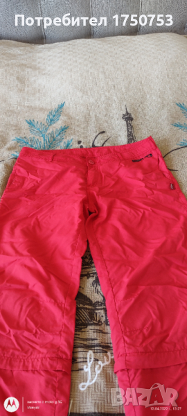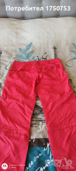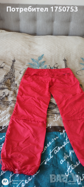 Дамски , летен , туристически и ежедневен панталон. Размер:L. Допълнителни размери:дълж. от чатала до долу 79 см; крачол 100 см;ширина в талия 45 см. Отличен , качествен , като нов. Най-долу крачолите се стягат с ластик. Част от тях се сваля , чрез цип и панталонът става с дължина под коляното. Материята е прохладна и бързо изсъхва.