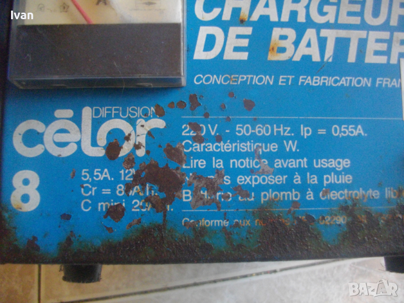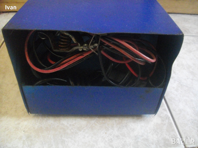 ОПИСАНИЕ НА СИНЬО ЗАРЯДНО - СТАРО, ВИСОКОКАЧЕСТВЕНО ФРЕНСКО ПРОИЗВОДСТВО. Производител, марка и модел са на снимките. Зарядното е ползвано, но в пълно отлично техническо и работно състояние. Метален корпус с размери 170х230х135мм. Гумирани крачета. Характеристики - 12 волта, 5,5 ампера, за акумулатори/батерии до 80 амперчаса Светлинна индикация за вклчващо зареждане. Наличие на амперметър аналогов на челнитя панел.Масивен пусков ключ. метални щипки стандартни за полюсите/клеми. Корпуса на зарядното/станция е с вградено място отзад за прибиране на захранващият кабел и полюсните кабели с щипки. Захранване - 220-230 волта. Тегло на зарядното/станция - 3,5 кг.