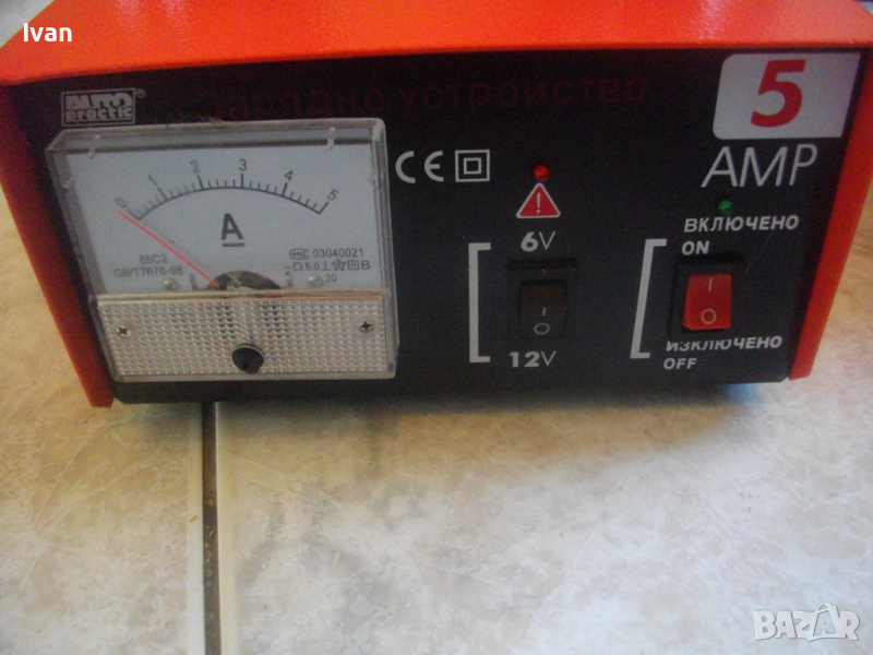 ОПИСАНИЕ НА ЧЕРВЕНО ЗАРЯДНО - съвсем НОВО, неизползвано и неупотребявано. В пълна отлична техническа и работна функционалност и състояние. Марка и модел- ALIMO PRACTIL W205. Производоство - 2012 г - от Manifactured China - за български вносител и българската магазинна мрежа. Сттикерите с указания са на БГ език. Характеристики на зарядното - Захранване - 220230 волта, мощност на акумулатора/батерията - 65 вата, изх.напрежение - 6/12 волта, ампераж - 5 А. За акумулатори макс 65 амперчаса и капацитет 15-80 АН.