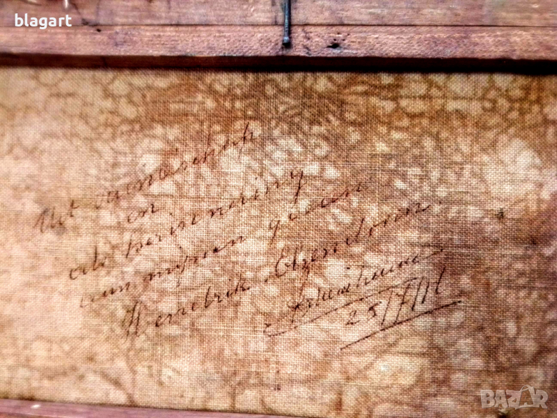 НАХОДКА! Оригинална Много стара 1911г. живопис-платно,масло,рамка ест.дърво. На гърба надпис ,подпис дата- трябва да се разчете.