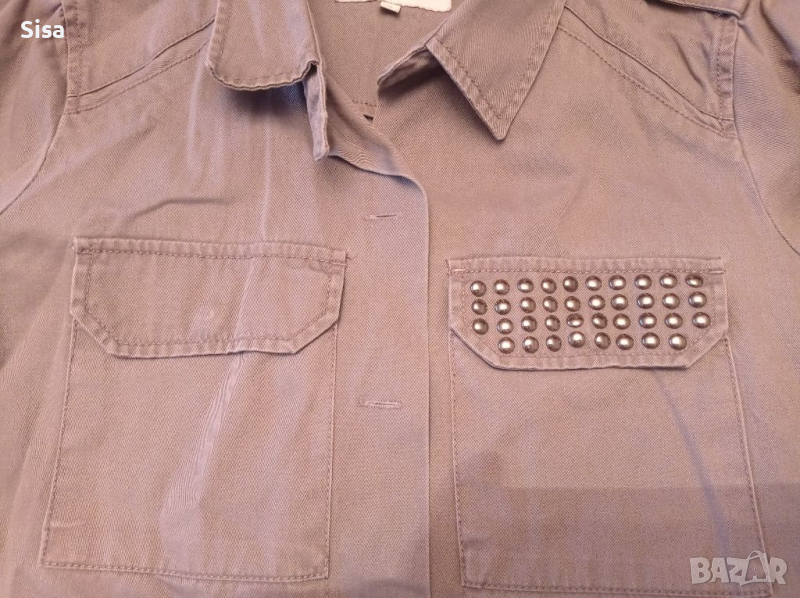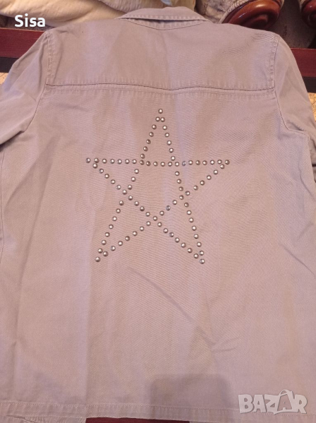 Риза тип връхно сако или яке, размер М/Л, ширина подмишници 50см, дължина от рамо 64см, дължина на ръкава от рамото 63см.
