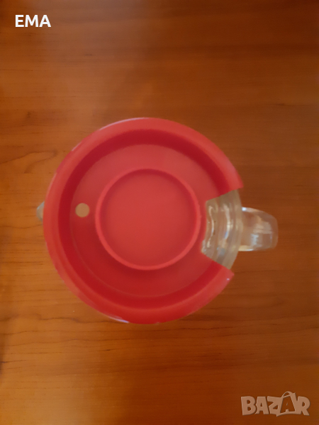 Кана с дръжка и капак и с контейнер за лед;възможност за охлаждане на напитките.Масивно дебело стъкло, и качествена изработка.Размери:височива:21см ;обем до 2л, прозрачна пласм.тръба за лед.цена 8 Euro