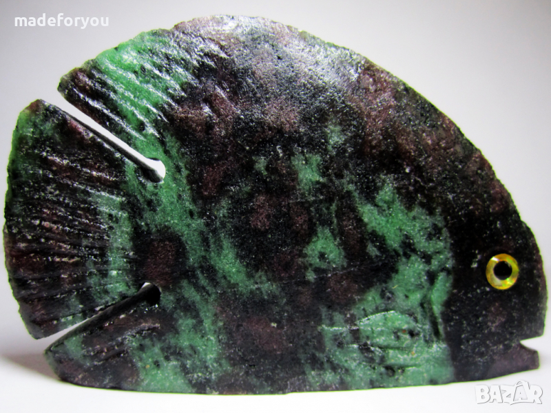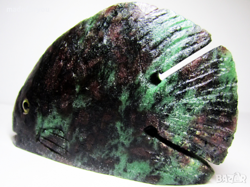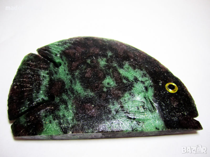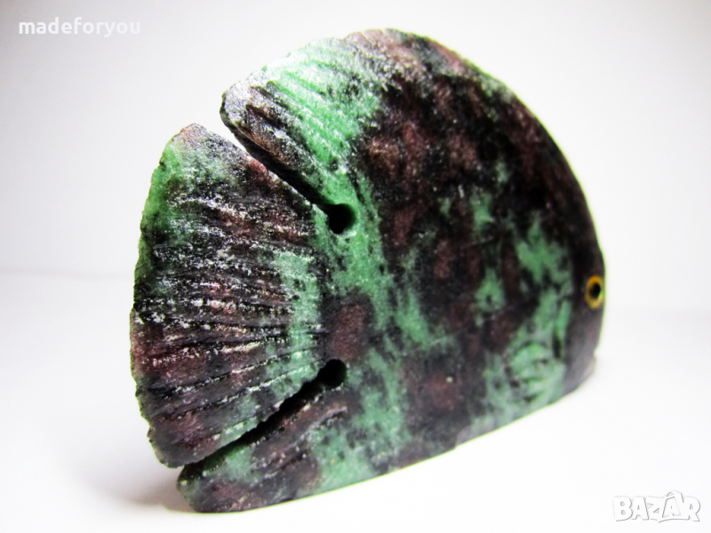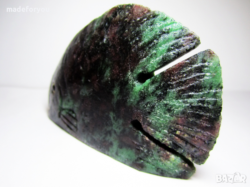 Красива декоративна тропическа Риба рибка от натурален естествен камък , Рубин в Зоисит или по известен като Аниолит.