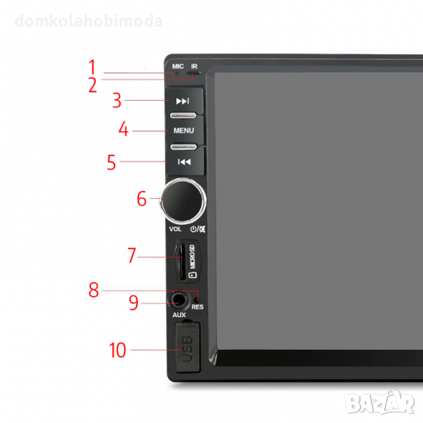 Мултимедия за автомобил, 12-24v, 7" TFT екран, Карта,USB, АUX изход, Bluetooth, Микрофон, FM, 4x60 W
