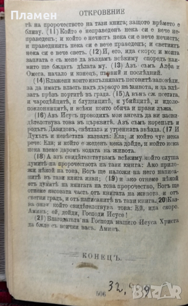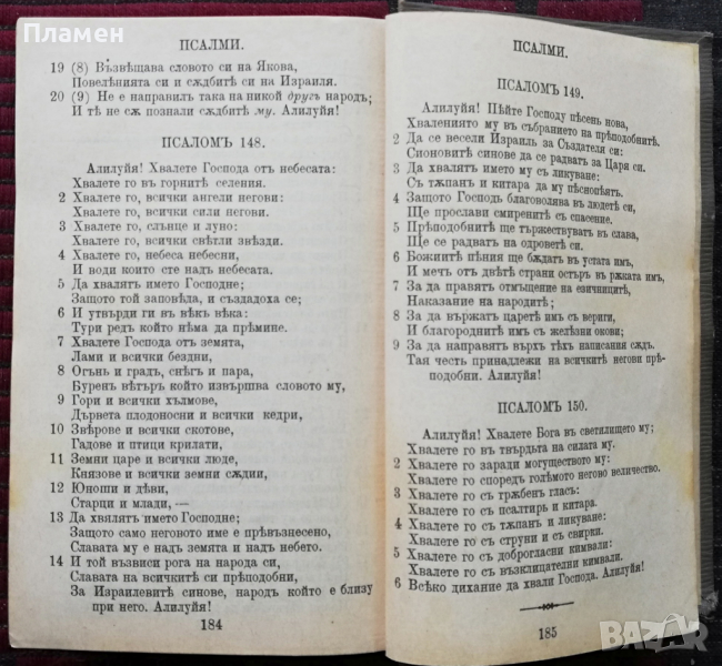 Вярно и точно преведенъ отъ първообразното -издание 1915г. с оригиналните твърди корици в 506 страници, заедно с Псалтиръ или книга Псаломска -издание 1913г. в 185 страници -23 евро.