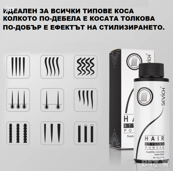 Тъкмо имате „bad hair day“? Преди да се върнете обратно в леглото или да нахлупите шапка, опитайте пудрата за коса Sevich. За няколко секунди тя ще придаде на косата ви обем и свежест и ще ви улесни при оформянето на прическата.