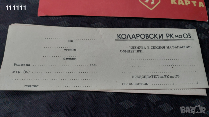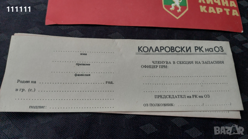 Стара Лична карта от минали времена от българската армия на запасния офицер → Обява 36460452
