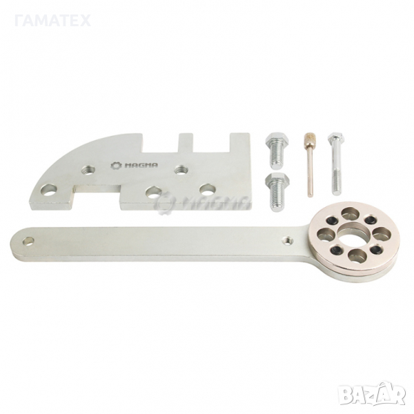 Комплектът включва всички специални инструменти, необходими за синхронизиране на двигателя при смяна на ангренажния ремък.