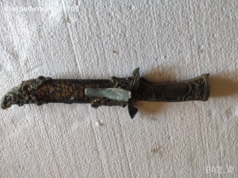 Много красив и стар нож. Бронзов обков. С кания също от бронз. Във идеално състояние за годините.