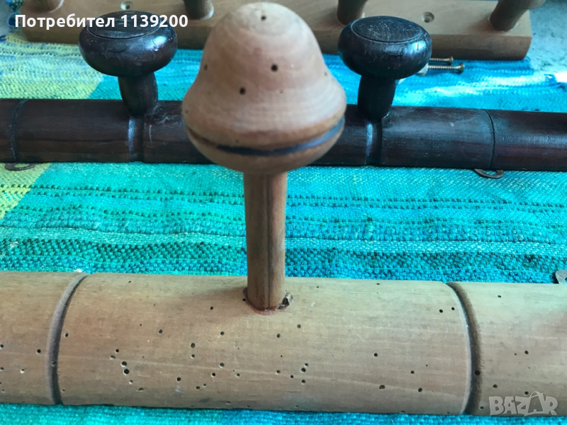 1. закачалка с 3 дръжки, с форма на "гъбки", дървото е с дупчици, проядено от дървояди 37х5,5