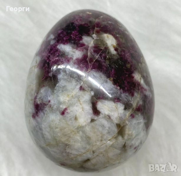 Красиво яйце от натурален Рубелит и Турмалин с красиви малинови цветове.