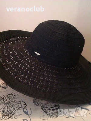 Черна Дамска лятна капела със средна по големина периферия. Отличен дамски модел, изработен от летни текстилни материали. Тази шапка е елегантно оформена и има ефектни проветриви акценти от типа на рязана дантела.