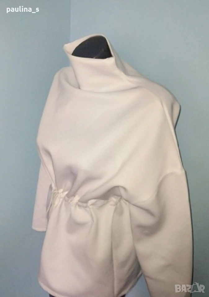 3️⃣. XL / 3XL - "Ekinoks" time. Цената е крайна, без пазарлъци 12,5 евро. Изумителна дреха - суичър или туника с кожен ефект в бяло. Материята е еластична и твърда, ширината се регулира с шнур. Има лек кожен ефект, може да се носи и върху други дрехи като преходно палтенце или като ветровка. Яката е висока, ръкавите са реглан - падащи.