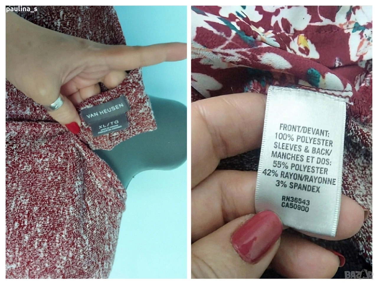 2️⃣ 2XL / 3XL - "Van Hausen". Цената е крайна, без пазарлъци 15 евро. Комбинирана маркова туника тип блуза в пъстър принт. Материята отпред е органза, отзад и на ръкавите е много еластична и покрива няколко размера, посочени са до 4XL.