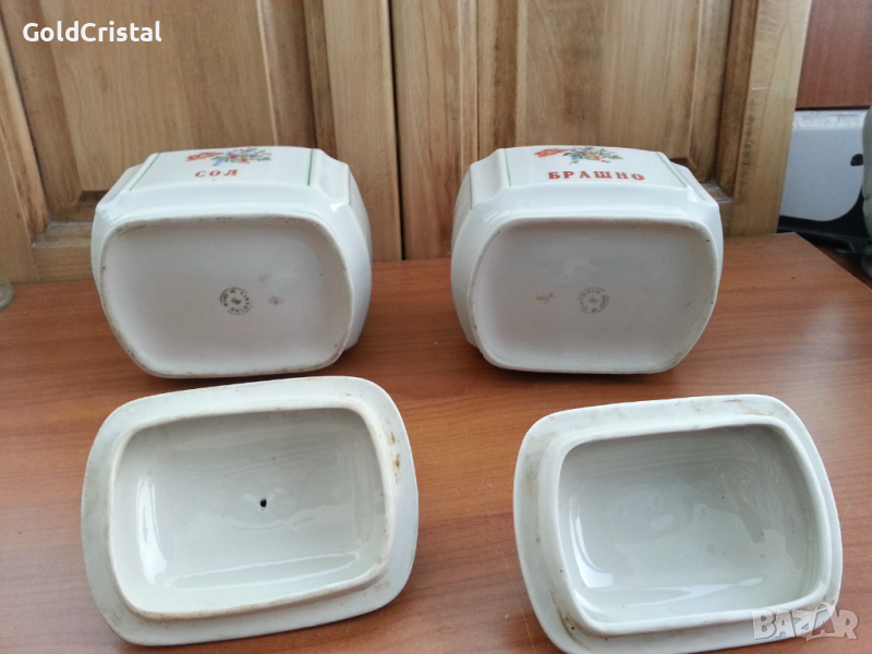 Български порцелан буркани брашно и сол , снимка 1 - Антикварни и старинни предмети - 36474209 Български порцелан буркани брашно и сол , снимка 2 - Антикварни и старинни предмети - 36474209 Български порцелан буркани брашно и сол , снимка 3 - Антикварни и старинни предмети - 36474209 Български порцелан буркани брашно и сол , снимка 4 - Антикварни и старинни предмети - 36474209 1/4