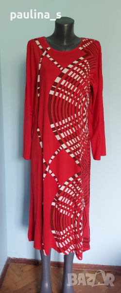1️⃣. 2XL / 5XL - "nanso". Цената е крайна, без пазарлъци 29,99лв / 15 евро. Еластична памучна рокля, голям размер. Моделът е семпъл, съобразено с размера. Материята е много еластично памучно трико. Принтът е весел, а дрехата е нова, без етикет.