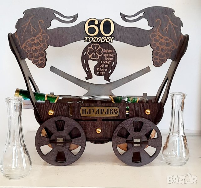 Или да допълните и с декоративна, дървена каручка с бутилка и чашки за ракия. Цена : 49.99лв.