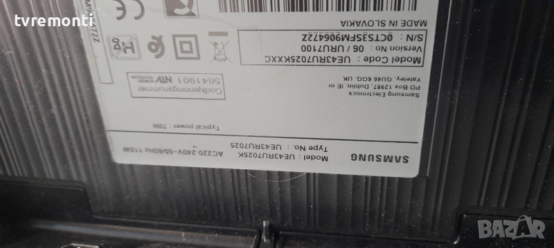 POWER BOARD,BN44-00947J, L43E7_RSM for ,SAMSUNG UE43RU7025K, Борда е гарантирано работещ Демонтиран от телевизор SAMSUNG модел UE43RU7025K със счупен дисплей CY-NN043HGHV1V тествана от нашия техник