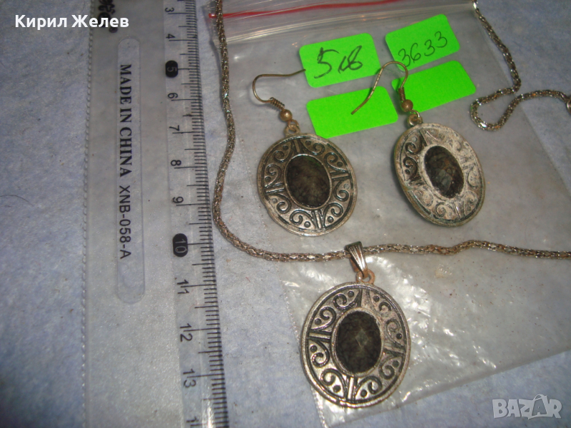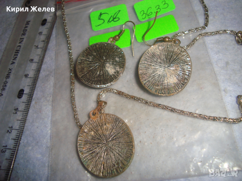 ПОСРЕБРЕН БИЖУТЕРИЕН КОМПЛЕКТ - КОЛИЕ и ОБЕЦИ ВИНТИДЖ АРТ ФЕШЪН МОДЕЛ НОВИ 3633