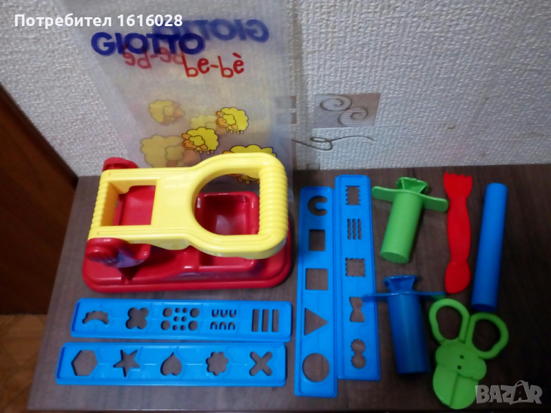 преса за пластелин с много различни представки, бутала,ножица и нож..