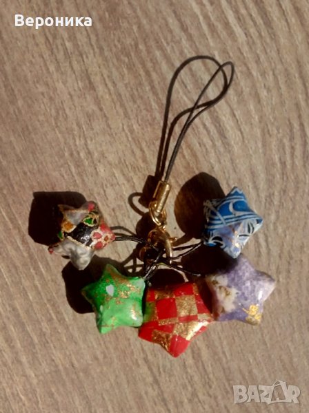 5. Аксесоар за мобилен телефон или чанта (Пет звездички от оригами). Цена 3 евро.